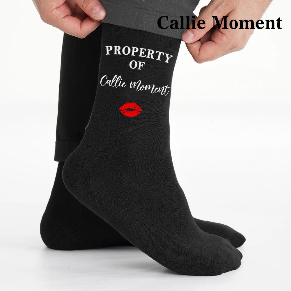 These mid-calf socks feature a bold red lip print and the "Property Of" quote, full of playful and personal touch. Customize them with your loved one’s name to create a one-of-a-kind gift that shows off your unique connection and love.